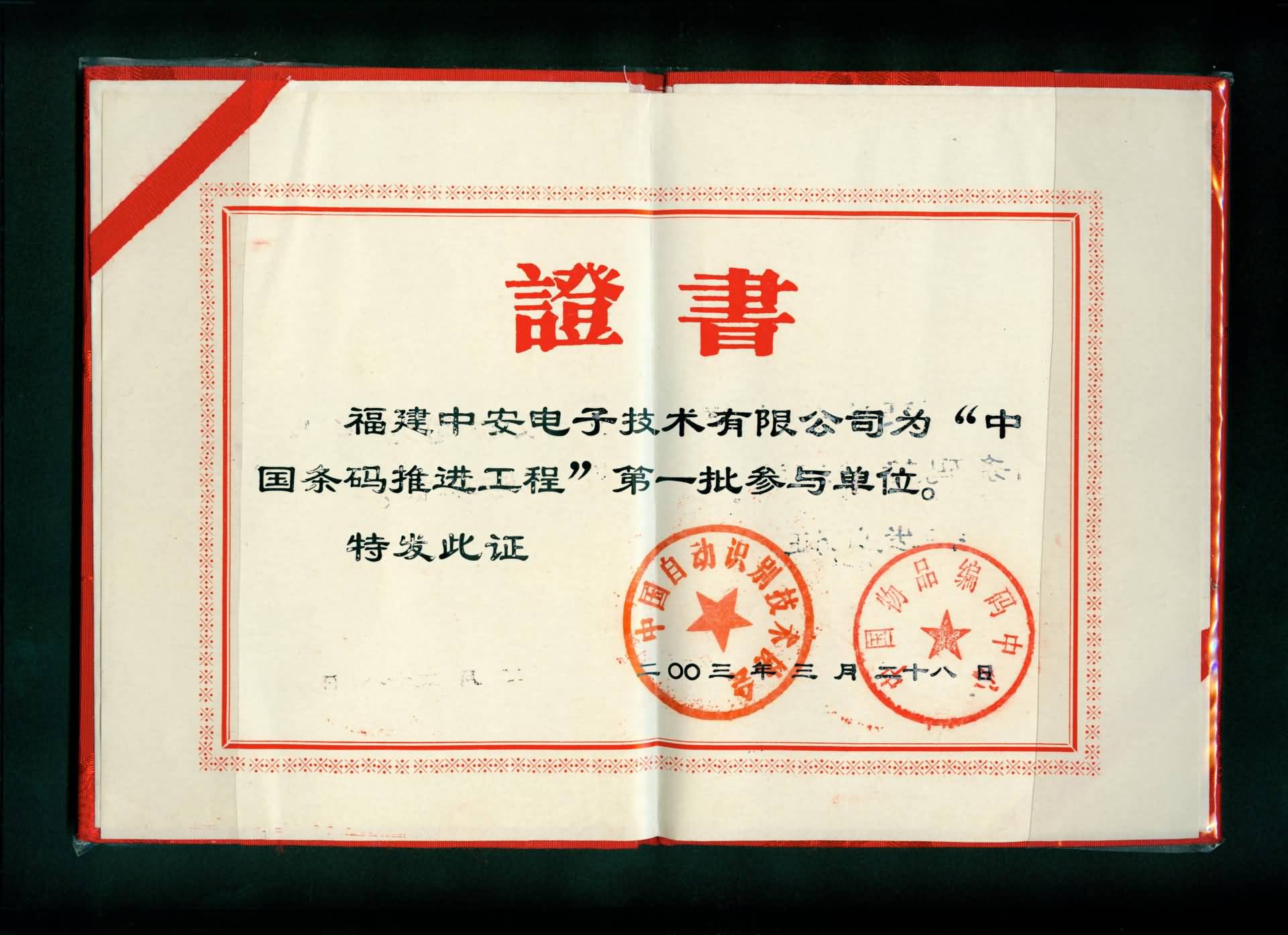 Signed the contract for the “Fuzhou Public Security Bureau 2D Barcode Temporary Resident Management System” project, marking China's first large-scale application of 2D barcode technology.
