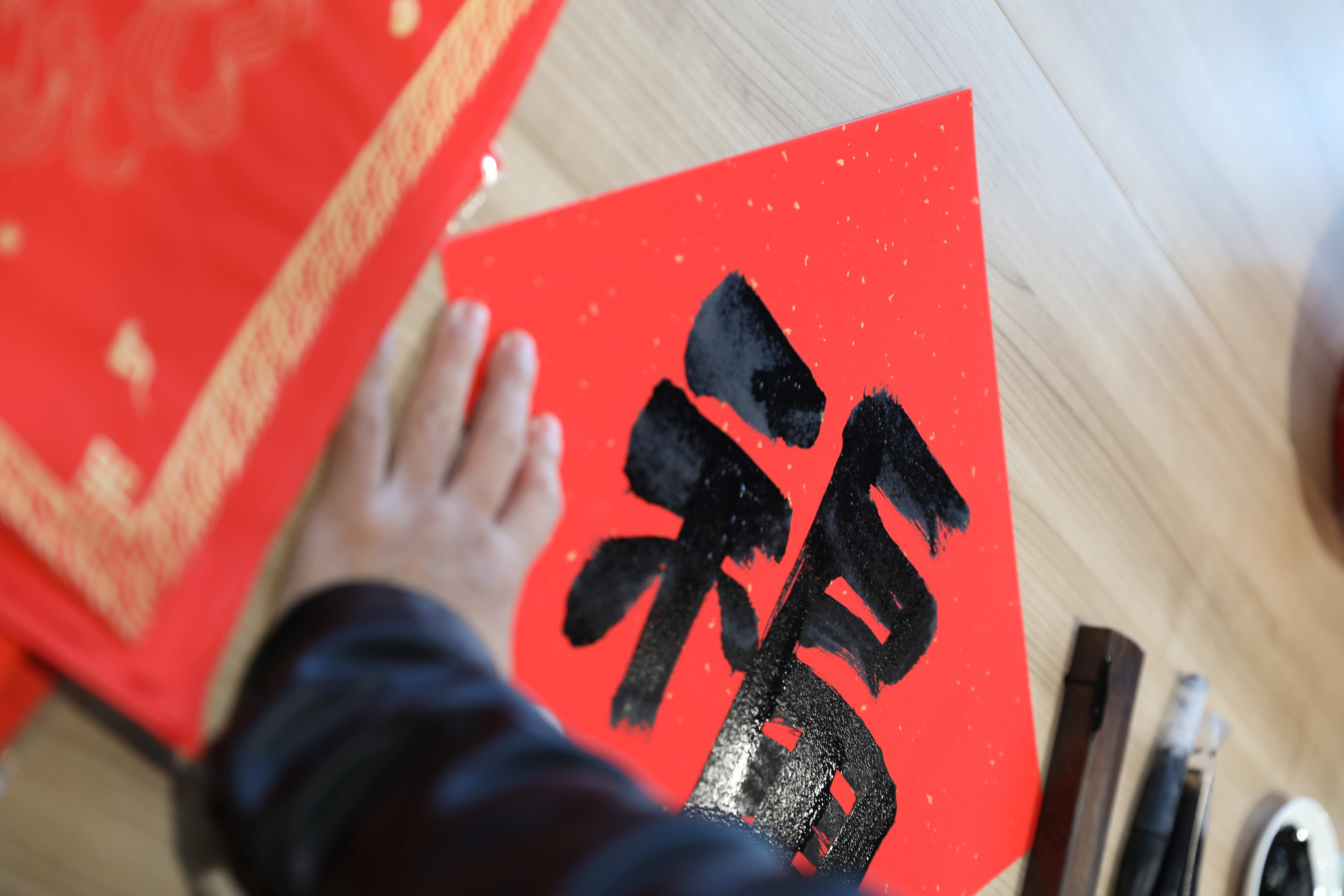 本次活动邀请了马江画院的9位书法家亲临现场,他们以笔为媒,以墨为礼,为160余名热情参与的员工书写春联280余幅。活动现场,书法家们挥毫泼墨,笔锋流转间,一幅幅寓意吉祥的春联跃然纸上,对仗工整,将对事业顺遂、家庭美满的期许融入其中;一个个饱含祝福的“福”字圆润饱满,尽显书法艺术的韵味,传递着浓浓的年味。